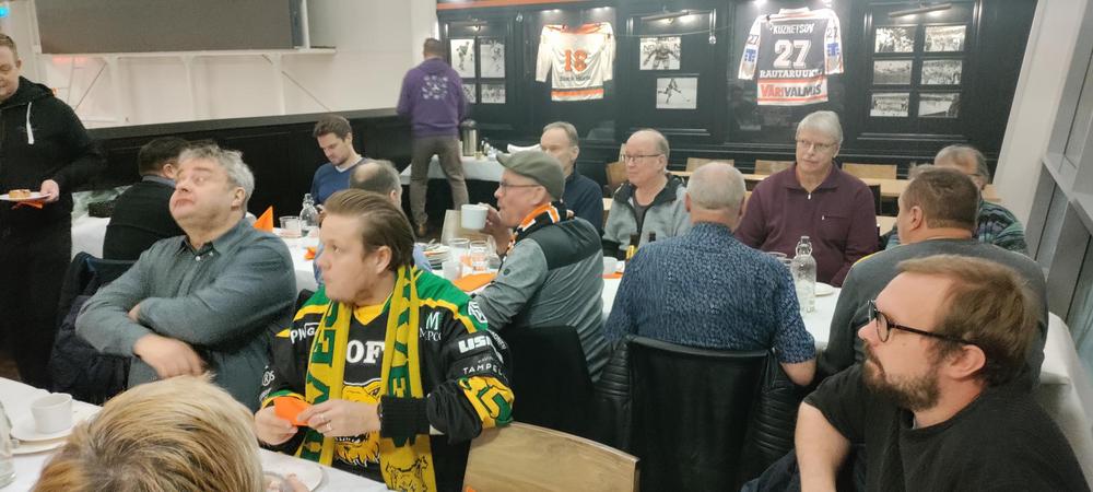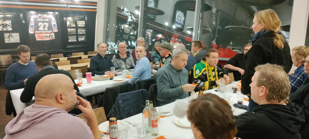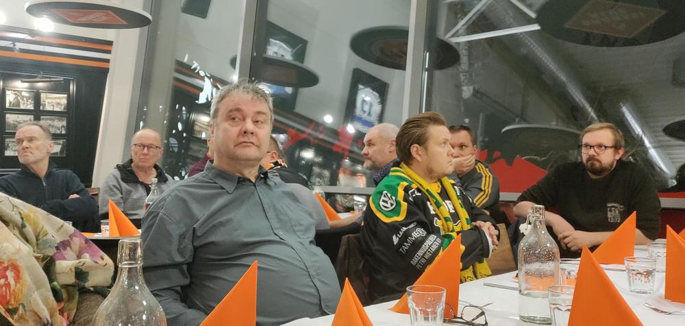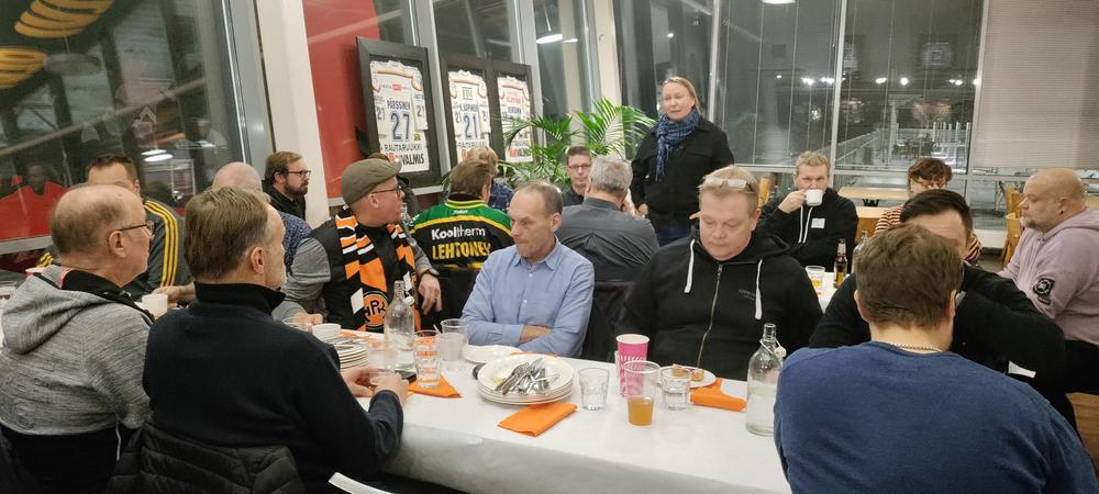 Petteri Oksa Insinööriliitosta toi meille terveiset mm. neuvottelujen tilanteesta. Muutenkin keskustelu oli vilkasta.